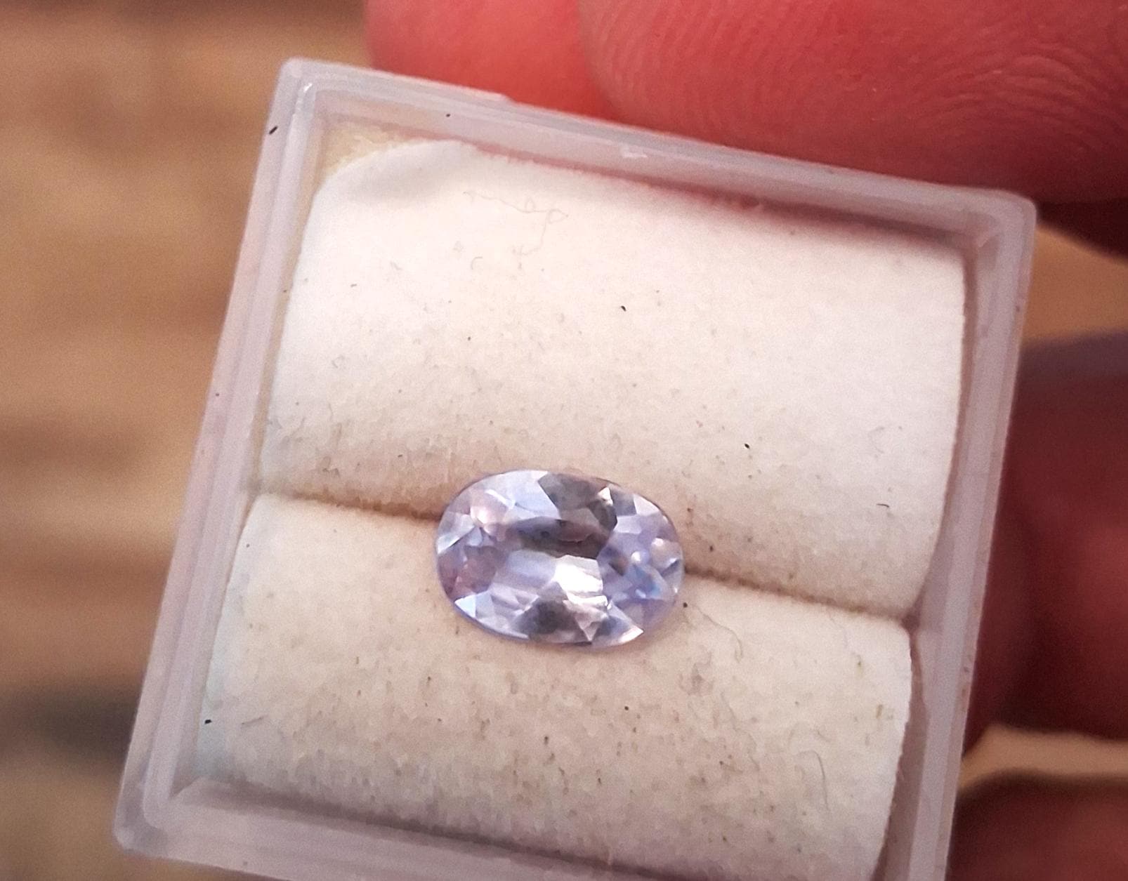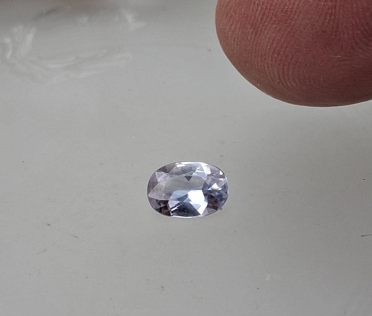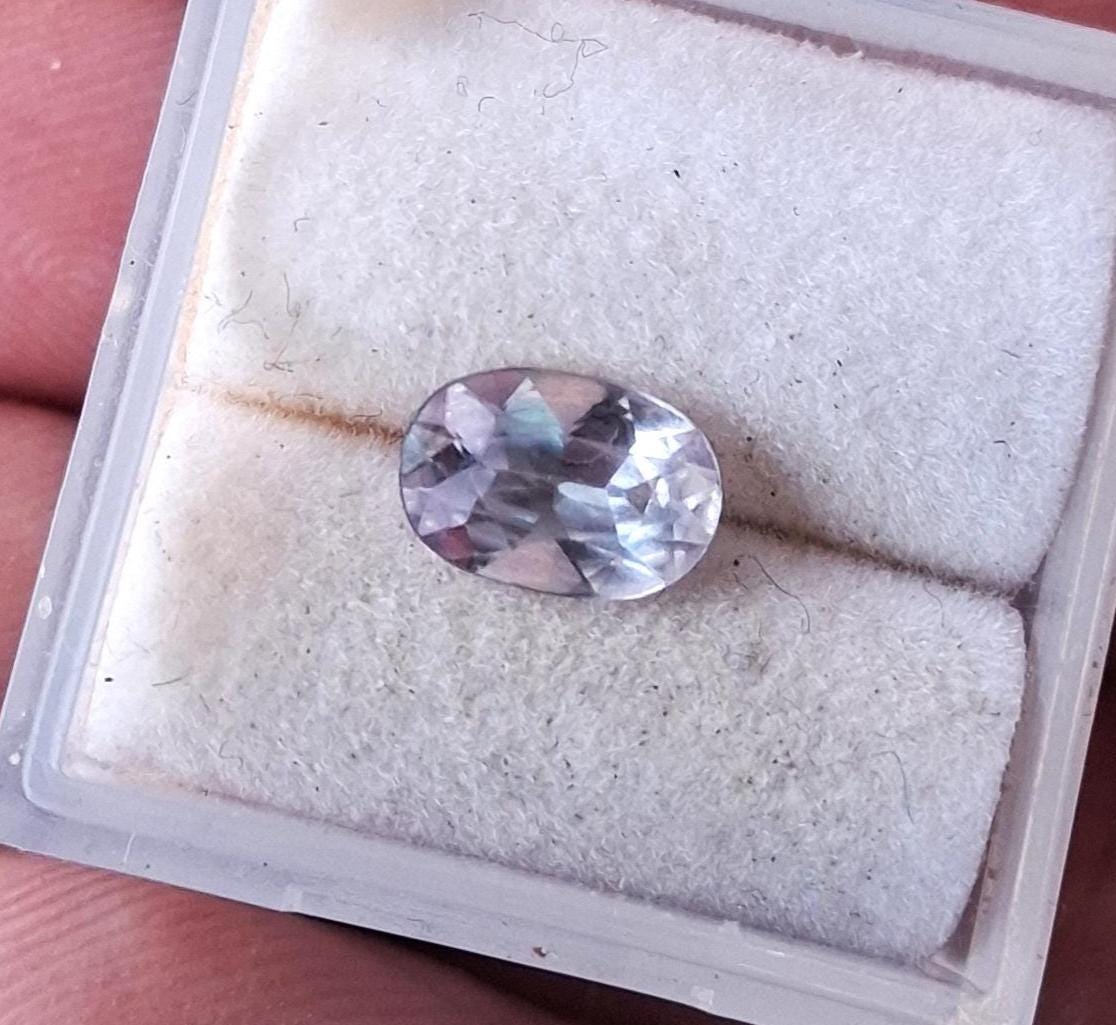 Natural lavender oval sapphire, eye clean precision cut September gemstone for jewelry gift. Weight: 0.96ct, size: 7.5x5.2 mm oval. clarity: eye clean color: light purplish blue. origin: Ceylon