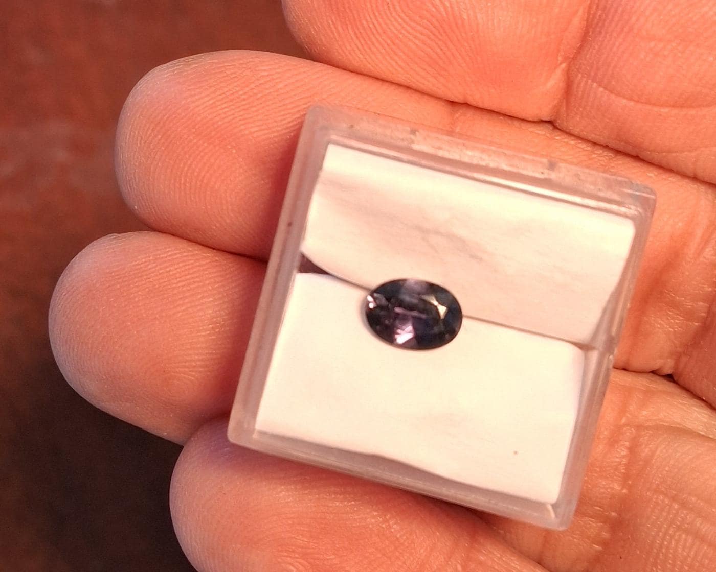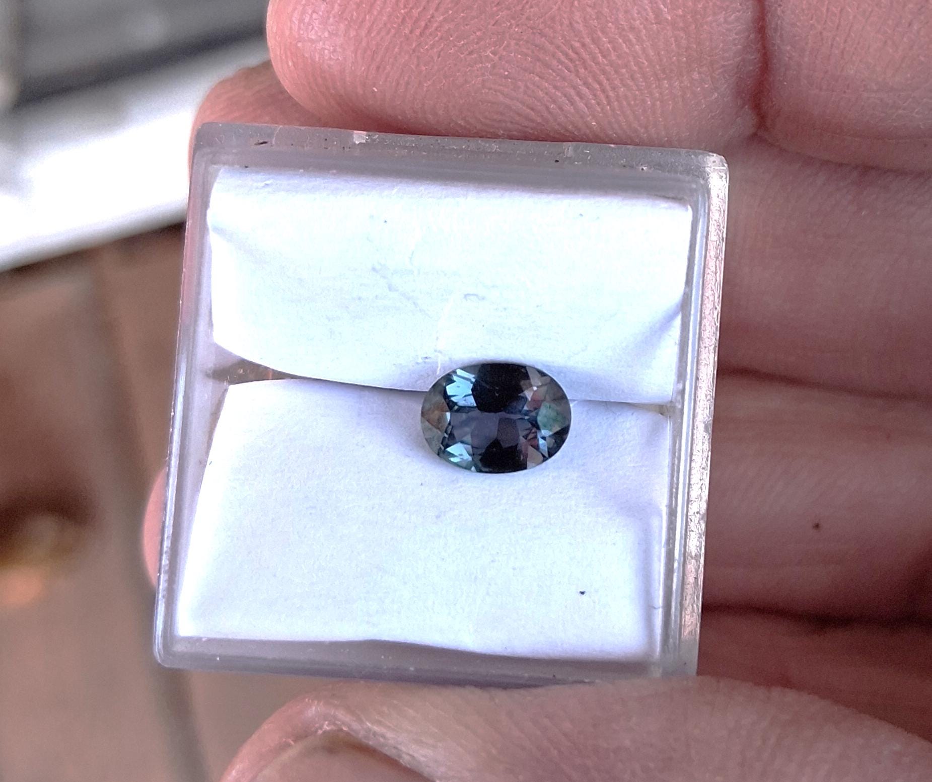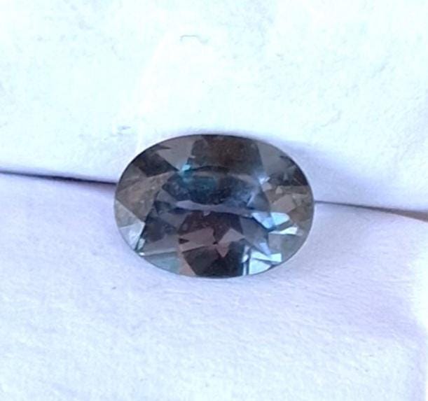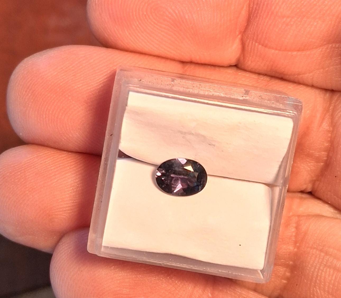 Ceylon Color change sapphire oval shape for September custom jewellery. Weight: 0.86 ct, Size: 6.9x5 mm, clarity: eye clean, color: change from gray blue to purple blue, Origin: Ceylon.
