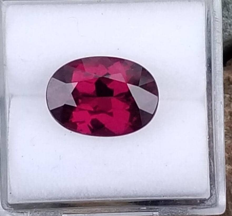 Rich raspberry red 4.70cts, 12x8.6mm oval natural rhodolite garnet.