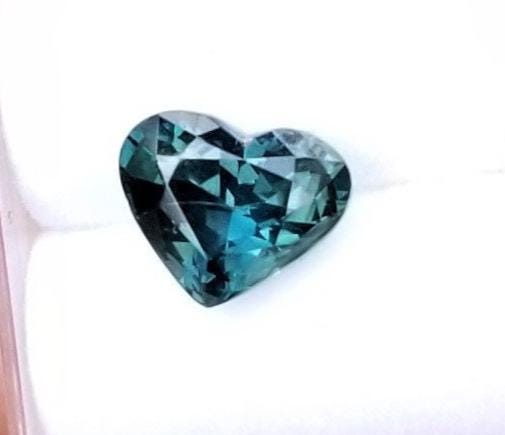 Blue green sapphire Heart Shape September birthstone, unique gemstone special gift for her for jewelry birthday . Gemstone size: 9x7.4 mm heart shape. weight: 2.35 carats. color: blue with green as secondary color. origin Ceylon clarity: Some inclusions noticeable but not detrimental to the beauty of the sapphire.
